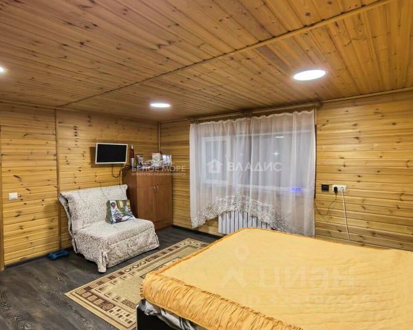 Общая площадь 100 м2. Гостиная-кухня 16 м2, три комнаты 11; 19,4 и 13,2 м2. Прихожая 23 м2, обшита вагонкой. Пристроено крыльцо с окнами около 20 м2. Печное отопление, печь из кирпича, стоит на своем фундаменте. Рядом с участком находится колонка, есть возможность завести центральное водоснабжение в дом.