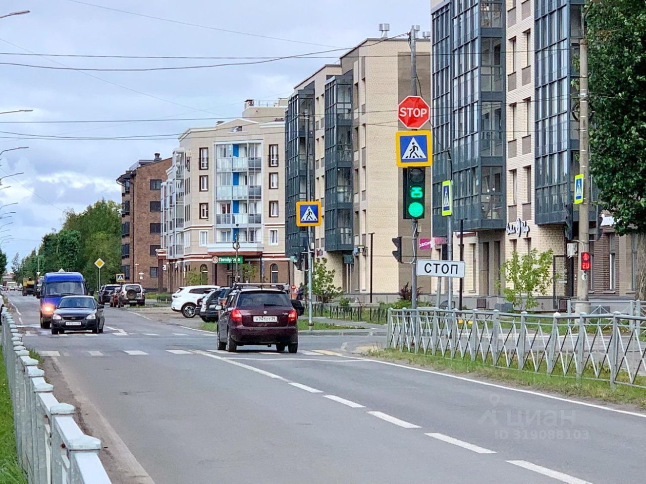 Перекресток Беломорского проспекта и улицы Индустриальной, первая линия, активно развивающийся жилой квартал. В непосредственной близости расположены многофункциональный центр, магазины торговых сетей Магнит, Винлаб, Пятерочка, Красное&Белое, остановка общественного транспорта. Завершено строительство нескольких жилых комплексов.