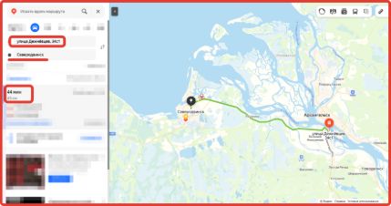 До центра Архангельска: время в пути 16 мин., расстояние 8 км.