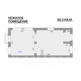 Помещение правильной прямоугольной формы, общей площадью 88,3 кв.м.