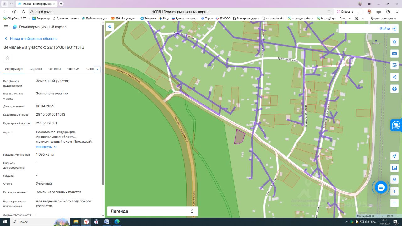 земельный участок с кадастровым номером 29:15:061601:1513, площадью 1095 кв.м., категория земель: земли населённых пунктов, разрешённое использование: для ведения личного подсобного хозяйства, расположенный по адресу (местоположение): Российская Федерация, Архангельская область, Плесецкий муниципальный округ, п. Шелекса, ул. Смолзавода