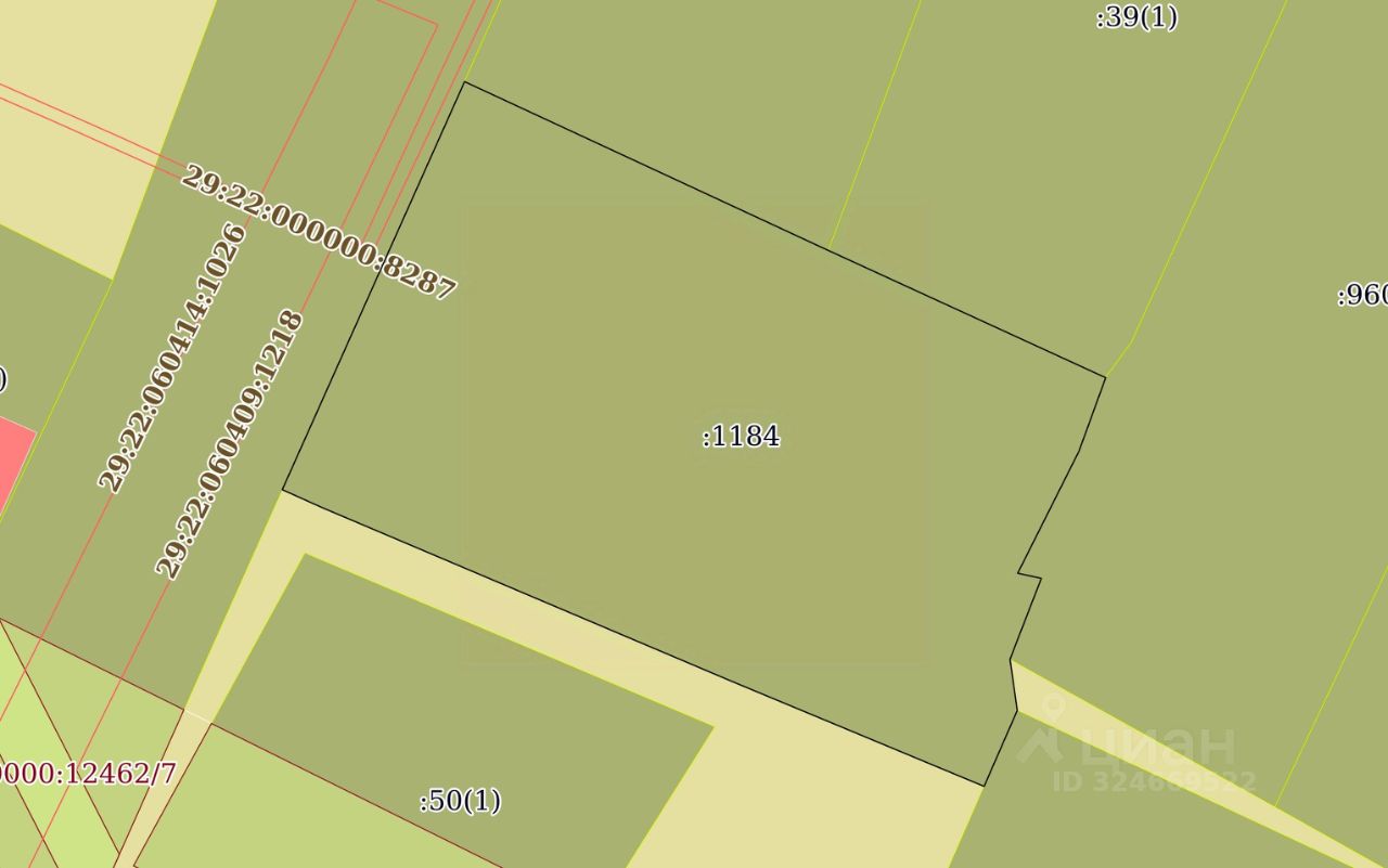 Земельный участок (категория земель земли населенных пунктов), государственная собственность на который не разграничена, с кадастровым номером 29:22:060409:1184, общей площадью 1 369 кв. м, расположенный по адресу: Российская Федерация, Архангельская область, городской округ "Город Архангельск", город Архангельск, улица Кооперативная, земельный участок 6 для индивидуального жилищного строительства.