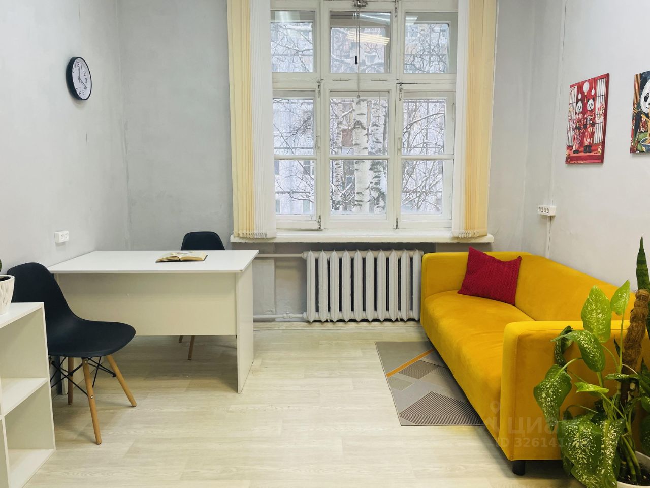 Сдается со всей мебелью, что на фото (стол, диван, стеллаж, 2 стула, жалюзи, вешалка) и есть еще место для размещения вашего оборудования.