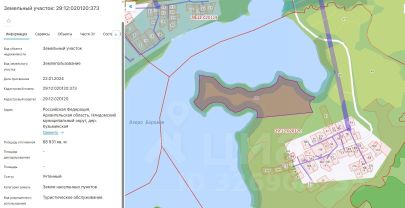 Земельный участок из земель населенных пунктов, с кадастровым номером 29:12:020120:373, расположенный: Российская Федерация, Архангельская область, Няндомский муниципальный округ, дер. Кузьминская, площадью 68931 кв. м., с видом разрешенного использования: туристическое обслуживание