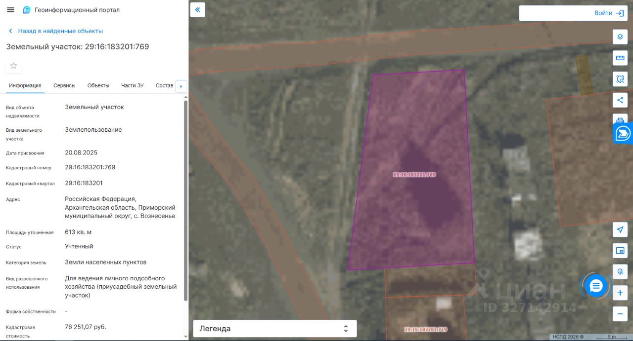 Предмет аукциона: Право на заключение договора аренды земельного участка. Срок аренды земельного участка: 20 лет Местоположение земельного участка: Архангельская область, Приморский муниципальный округ, с. Вознесенье. Категория земель: земли населенных пунктов Площадь земельного участка: 613 кв.м. Кадастровый номер: 29:16:183201:769 Форма собственности: земельный участок, государственная собственность на который не разграничена. Территориальная зона: зона застройки индивидуальными жилыми домами (Ж-3). Разрешенное использование земельного участка: для ведения личного подсобного хозяйства (приусадебный земельный участок). Обременение: земельный участок ограничен в использовании как зона с особыми условиями использования территории, реестровый номер 29:16-6.1152, 29:16-6.877, 29:16-6.878.