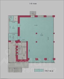 Предлагаемая площадь 183,7 кв.м., оставшуюся часть первого этажа занимает бар Pulse.