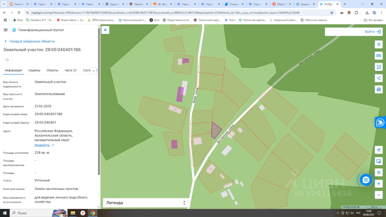 Земельный участок с кадастровым номером 29:05:040401:186 площадь 228 по адресу Российская Федерация, Архангельская область, муниципальный округ Каргопольский, деревня Морщихинская, улица Центральная, земельный участок 33