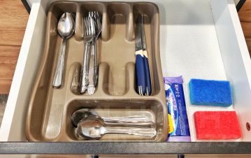 - Питьевая вода (фильтр "Аквафор"), посуда для приготовления и приема пищи, пакетированный чай, сахар, соль