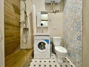 Современная ванная комната, где каждый ваш день начнется с бодрости и свежести. В ней мы предусмотрели даже гигиенический душ и водонагреватель.