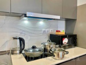 Кухня оборудована всем необходимым - холодильник, микроволновая печь, плита, чайник;
