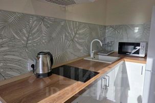 * Оборудованная зона кухни. Для вашего удобства: холодильник, варочная панель, вытяжка, СВЧ-печь, чайник. Набор посуды и столовых принадлежностей;