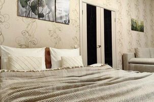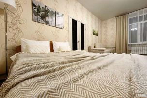 Просторный интерьер: вас ждёт удобная двуспальная кровать с чистым свежим бельём и мягкими пушистыми полотенцами, всё подготовлено специально для вас.