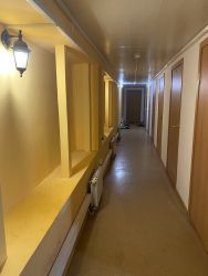 Есть спальное место, комод, стол, холодильник, стир.машина автомат в местах общего пользования. Шкафа нет.