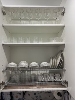 -пылесос, утюг, гладильная доска, сушилка, кастрюли, сковороды красивая посуда, бокалы — все это есть.