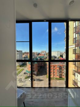 Балкон с панорамным остеклением позволяет в полную меру наслаждаться видами на реку и город.