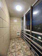 Потолки натяжные с большим количеством осветительных приборов, на полу ламинат и плитка, Окна пластиковые, балкон и лоджия выходят на разные стороны дома, оба застеклены.