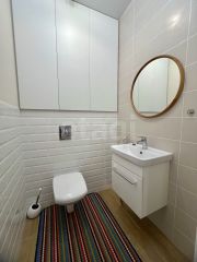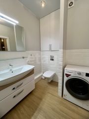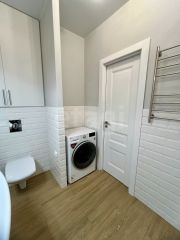 2 санузла, оба облицованы кафелем, в каждом санузле водонагреватель, есть гигиенический душ, стоит акриловая ванна и тропический душ, теплый пол, установлена стиральная машина с загрузкой на 7 кг.