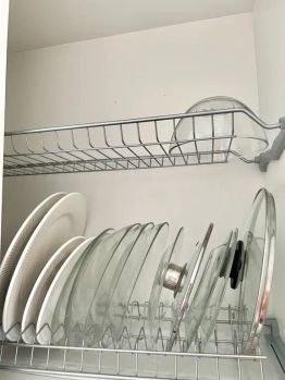 Отдельная кухня с газовой плитой. Стиральная машина-автомат, холодильник, микроволновая (свч) печь, электрический чайник, фильтр-кувшин с новым картриджем, необходимая посуда.