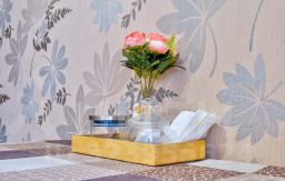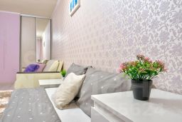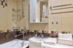 Однокомнатные апартаменты подойдут для возможного размещения 4 человек. Спальные места представлены в виде двуспальной кровати и раскладного дивана. Есть балкон. Из мебели имеются: кухонный гарнитур, стол, стулья, шкаф, гладильная доска и сушилка для белья. Из необходимой техники: микроволновая печь, холодильник, стиральная машина, чайник, плита с духовым шкафом, утюг, фен. Предоставляются также ванные принадлежности, комплект постельного белья и полотенец. Доступны WI-FI и кабельное ТВ. В доме есть лифт, общественная парковка во дворе.