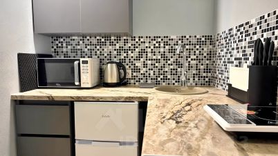 Кухня оборудована всем необходимым: холодильник, микроволновая печь, индукционная плита, чайник;