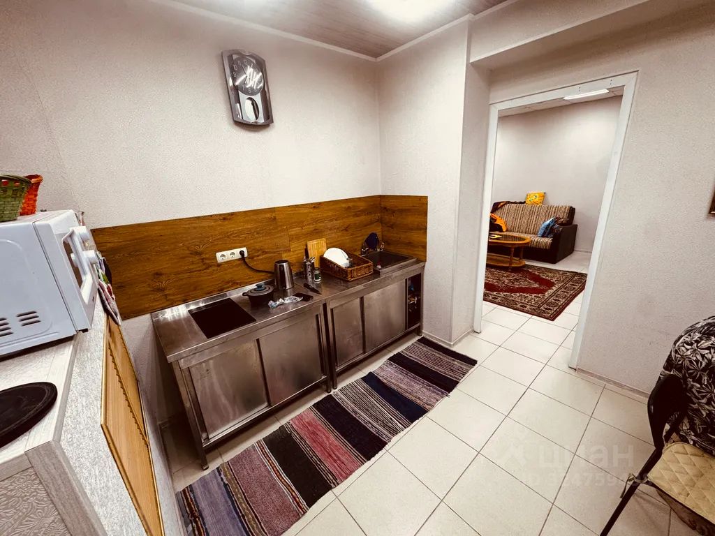 Полностью оборудованная кухня: всё необходимое для приготовления пищи (плита, холодильник, посуда, чайник).
