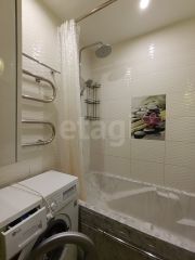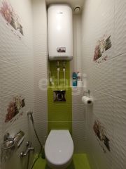 Санузел раздельный в кафеле, есть стиральная машина и установлен накопительный водонагреватель.