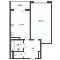 Площадь комнаты 20.6 кв. м. Кухня-гостиная (14, 1 кв. м.) дает простор для реализации любых кулинарных фантазий, размещения современной техники и оборудования зоны для приема гостей.