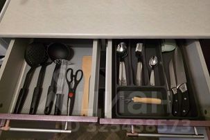 * Оборудованная зона кухни. Для вашего удобства: холодильник, плита, духовка, чайник. Набор посуды и столовых принадлежностей;