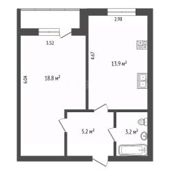 На долгий срок, площадь 41,4 кв. м.