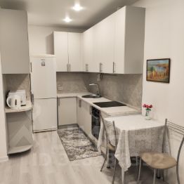 Есть вся необходимая посуда и бытовая техника: посудомоечная машина, духовка, микроволновая печь, индукционная плита, вытяжка, электрический полотенцесушитель, стиральная машина, телевизор