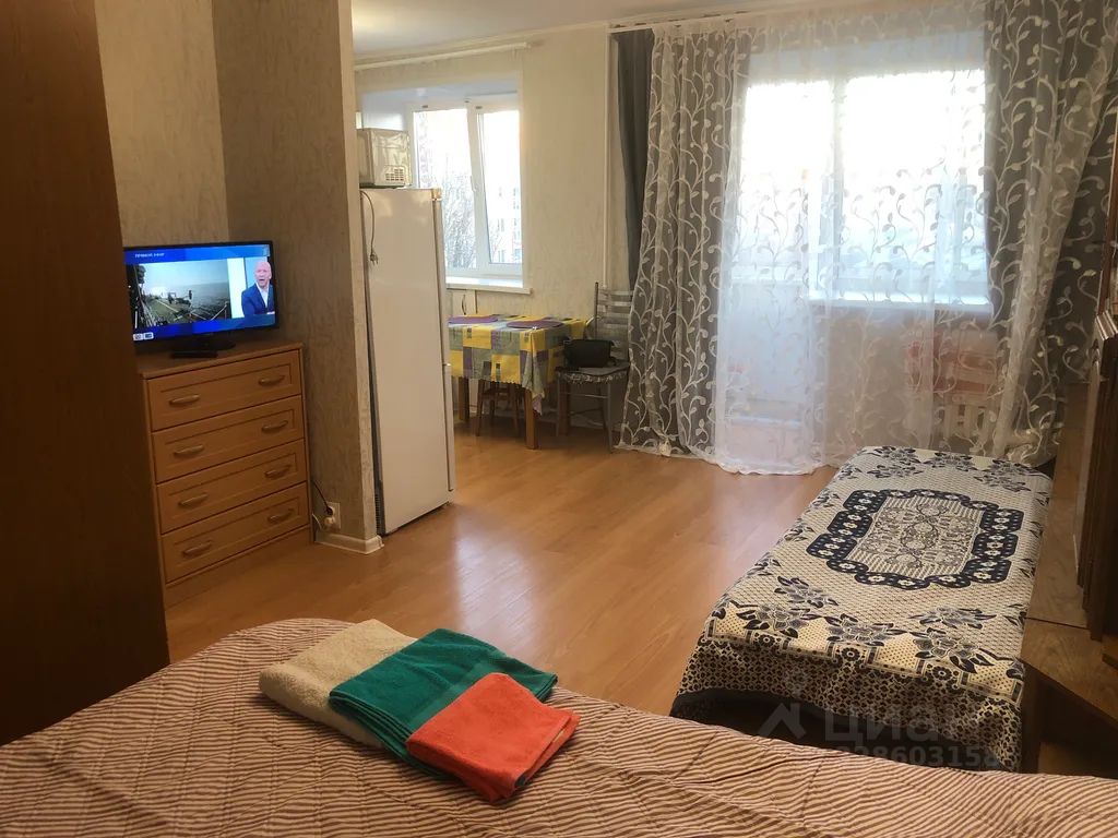 В квартире есть кровать, раскладушка, телевизор, стиральная машинка, холодильник, чайник, свч печь. Белье полотенца посуда, средства гигиены.
