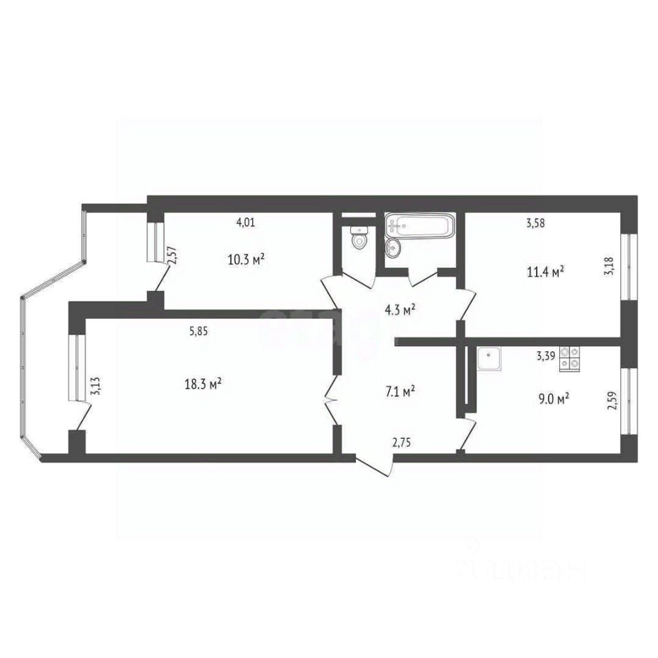 64,1 м²
