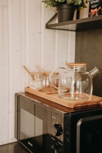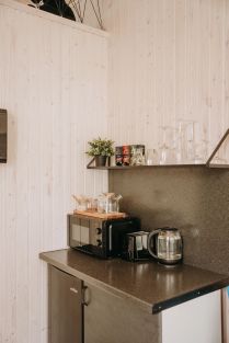MiniMagicHome уютный домик с сауной, предусмотрен для размещения до 4х человек. В доме предусмотрено все для комфортного пребывания, а именно: постельное белье и полотенца, пледы и тапочки для взрослых, фен, шампунь, гель, мыло, зубные щетки, мицелярная вода, туалетная бумага, аптечка, WiFi, TV, проектор, электро камин, электрокарниз с раздвижными шторами, зарядные устройства для телефонов, книги, настольные игры, карты, пазлы, стол+4 стула, Mini холодильник, микроволновая печь, чайник, тостер, электрогриль, эл/плита, сковорода, кастрюли, 4 комплекта стеклянной посуды, чай, кофе, сахар, приправы, соусы, зона барбекю, имеются шампура, собственная терраса с двумя качелями-креслами. Детям: игрушки, игры, раскраски, лото, карты, пазлы, детские полотенца/халаты, к-кт детской посуды для самых маленьких.