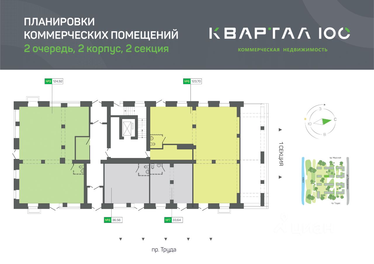 Продается коммерческое помещение в ЖК "Квартал 100" напрямую от застройщика! Сдача: II квартал 2024 IV квартал 2025 ХАРАКТЕРИСТИКИ ПОМЕЩЕНИЯ Назначение: свободное назначение Отделка: Черновая Высота потолков: до 4 м Класс энергоэффективности ЖК: В Количество входов: 1 (наличие отдельного входа с улицы) Количество этажей в помещении: 1 Проходимость: от 70 до 120 чел./час Количество квартир в ЖК: 923 Наличие мокрой точки: есть Преимущества: Густонаселенный район города, высокий автомобильный и пешеходный трафик. Все помещения имеют грамотную геометрию, площади составляют от 25 до 200 м². Рядом новые парки и зоны отдыха. Типы оплат: 100% оплата. Рассрочка от Застройщика. Коммерческая ипотека от банков партнеров. Дополнительные возможности: Доходность до 30% при покупке на этапе "котлована". Возможность сдачи в аренду
