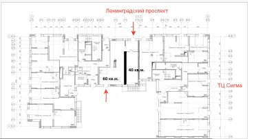 Общая площадь помещения - 100 кв.м., высокие потолки, все коммуникации центральные, санузел, два отдельных входа ( главный "центральный" вход со стороны пр. Ленинградский), помещение находится на первой линии по центру , большая парковка, высокий пешеходный и автомобильный трафик, густонаселённый жилой массив, в шаговой доступности остановки транспорта.