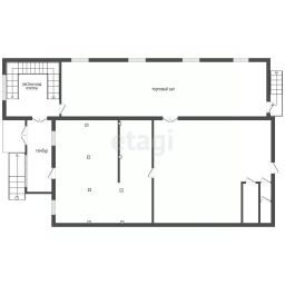 Есть центральный вход, тамбур с застекленным стеклопакетами ПВХ, из него две двери - одно помещение 210 кв.м., далее помещение 110 кв.м. Имеется подсобные помещения, склады и котельная с санузлом.