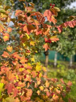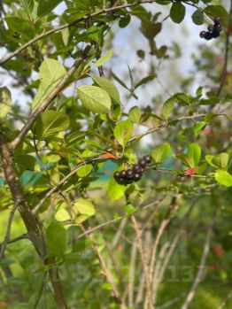 Участок сухой, солнечный, дуб, сосны, черноплодная рябина, грядки, кусты смородины, цветы.