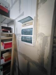 Помещение подготовлено к работе: выполнена чистовая штукатурка стен и разведена электрическая сеть.
