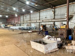 Склад оборудован распашными воротами под грузовой автотранспорт.