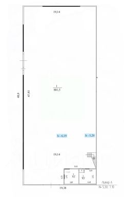 Помещение склада - открытой планировки, прямоугольное в плане, без колонн и несущих перегородок, с надстроенным антресольным этажом с обустроенной офисной частью.