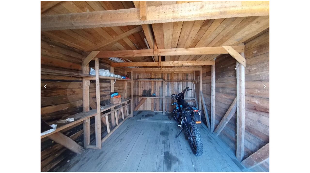 На прямой продаже деревянный гараж, покрытый железом на деревянных санях, в хорошем состоянии.