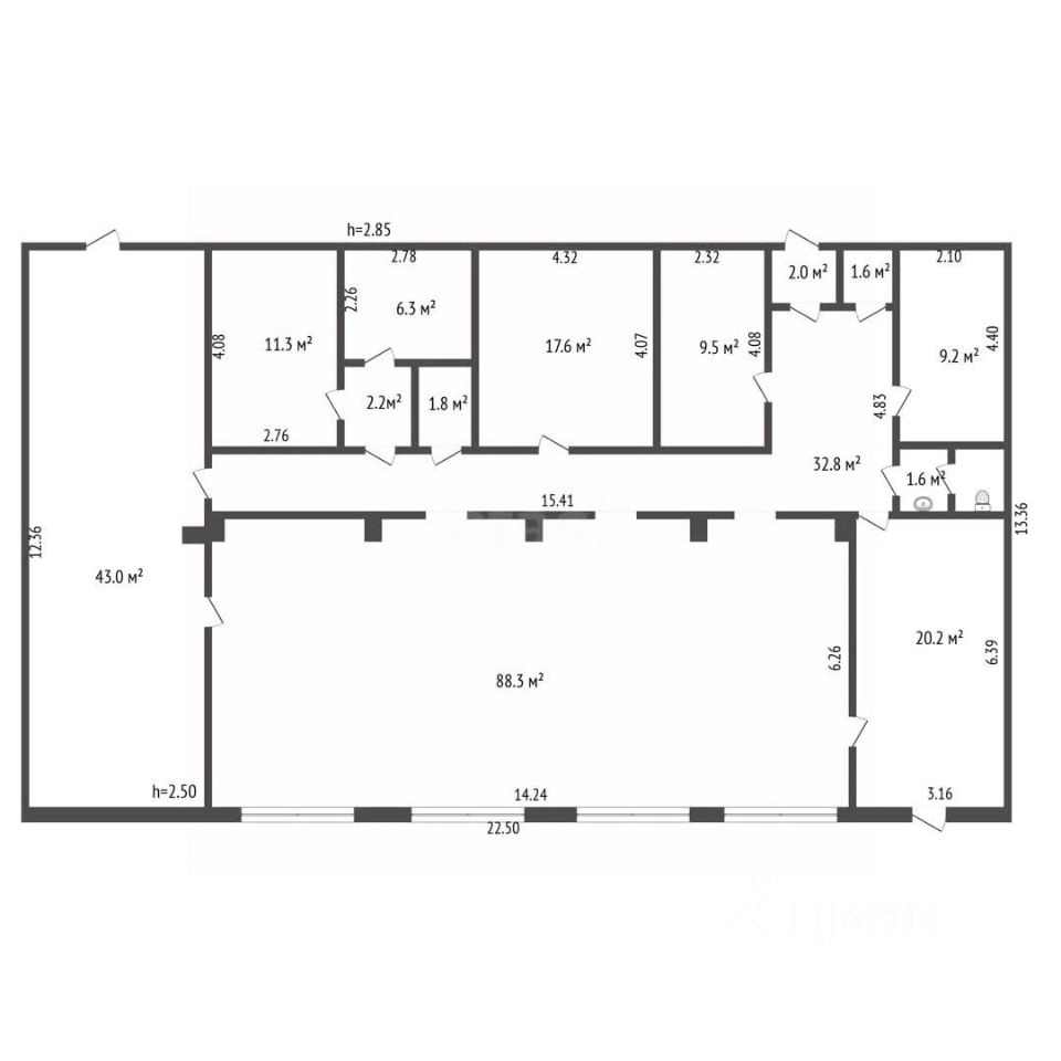 Одноэтажное здание состоит из 15 изолированных помещений, включающих три санузла, что позволяет гибко организовать торговое пространство.