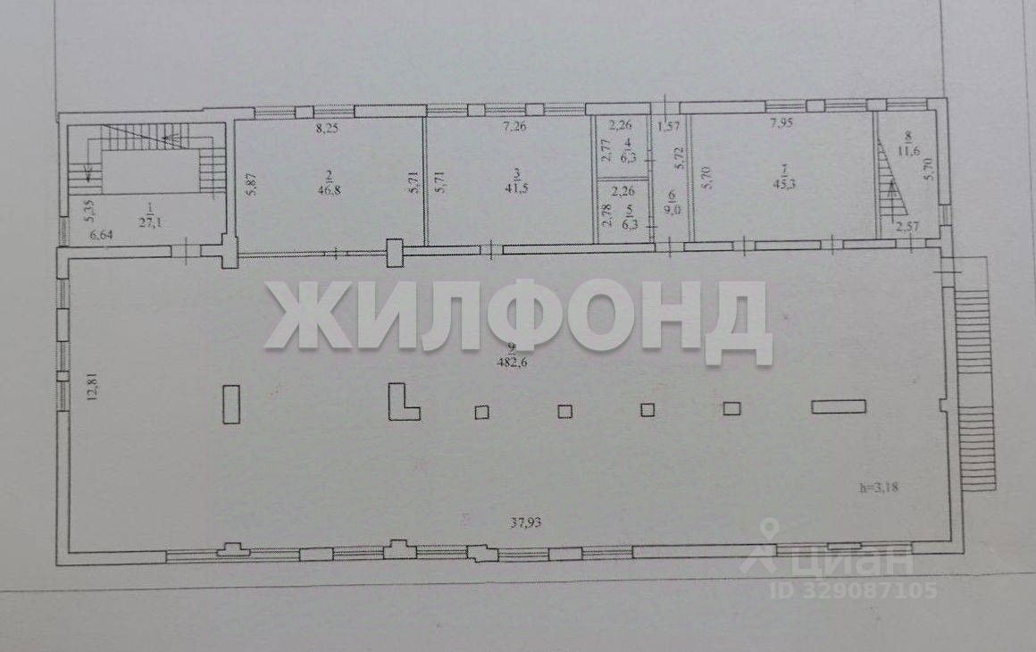 Продается помещение свободного назначения площадью - 676м2 на 3 этаже кирпичного здания по адресу: