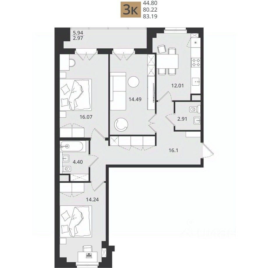Общая площадь83,19 м²
