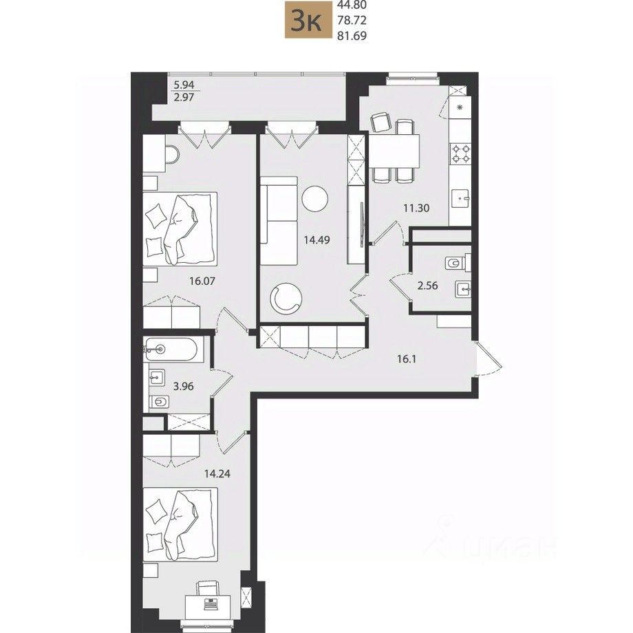Общая площадь81,69 м²