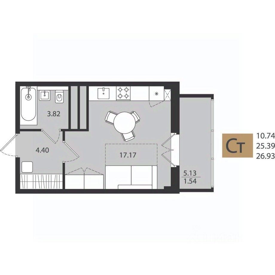 Общая площадь26,93 м²