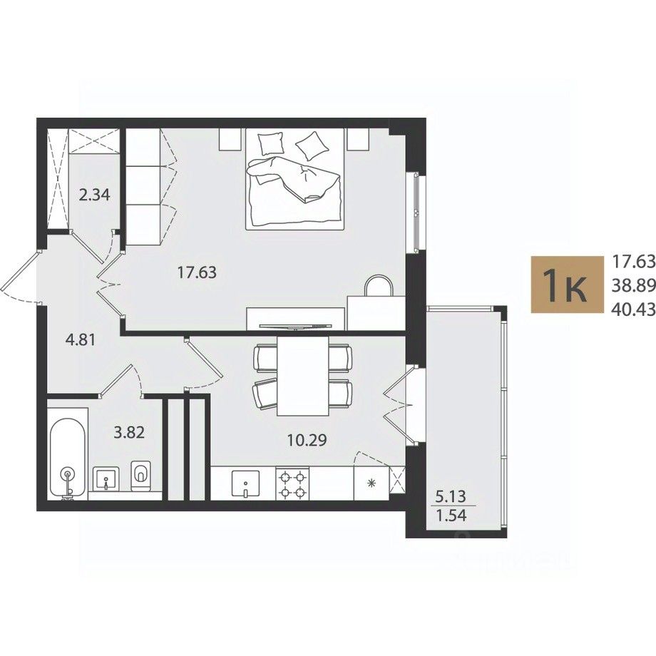 Общая площадь40,43 м²