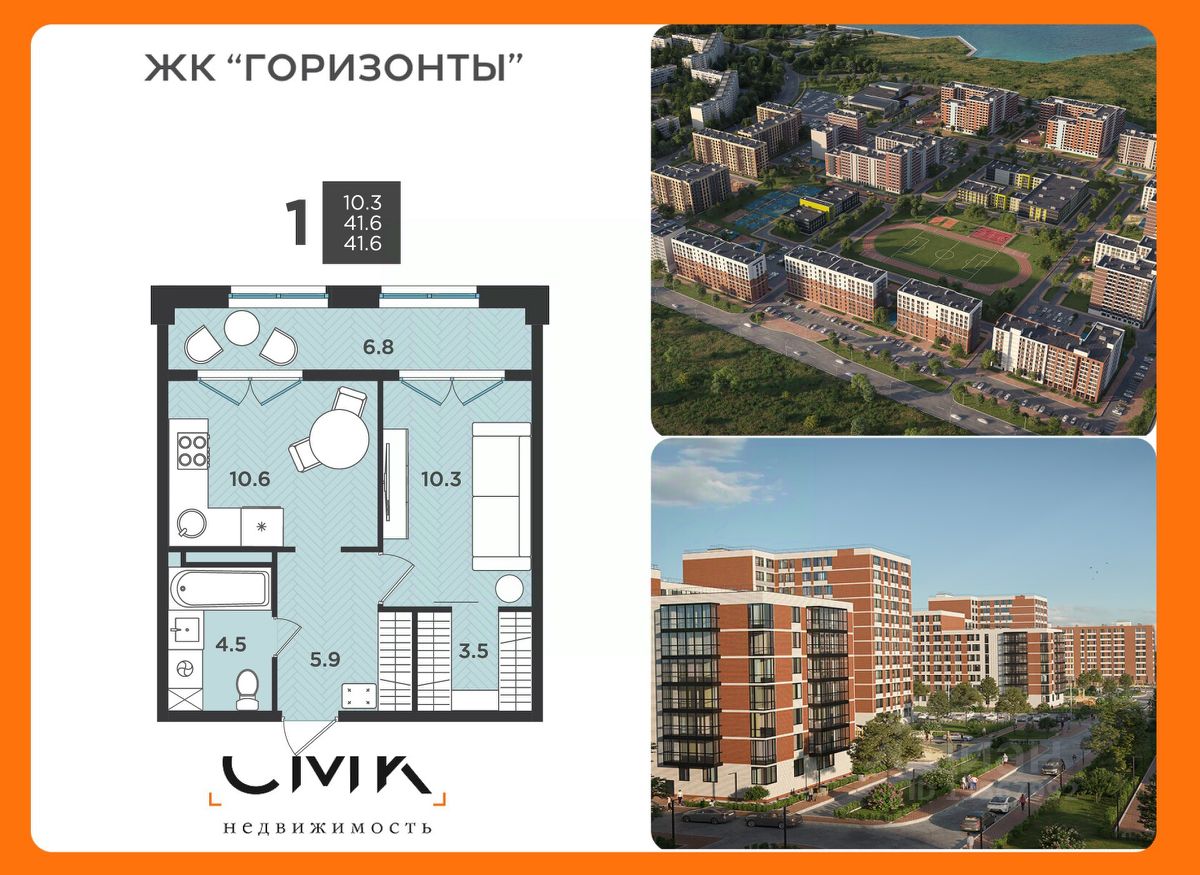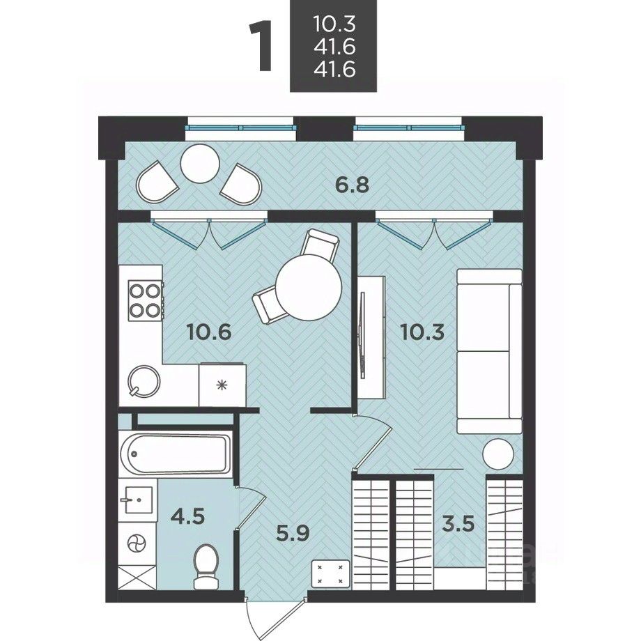 Общая площадь41,6 м²