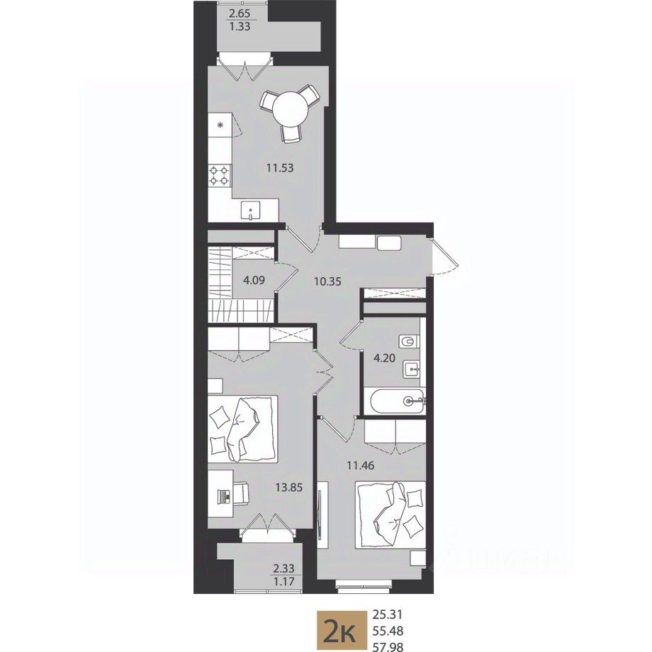 Общая площадь57,98 м²