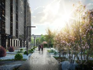 Благоустройство: разновозрастные детские площадки с антитравматическим покрытием, зона street workout: уличные тренажеры и турники, велопарковки, зоны отдыха со скамейками, озеленение территории, малые архитектурные формы.